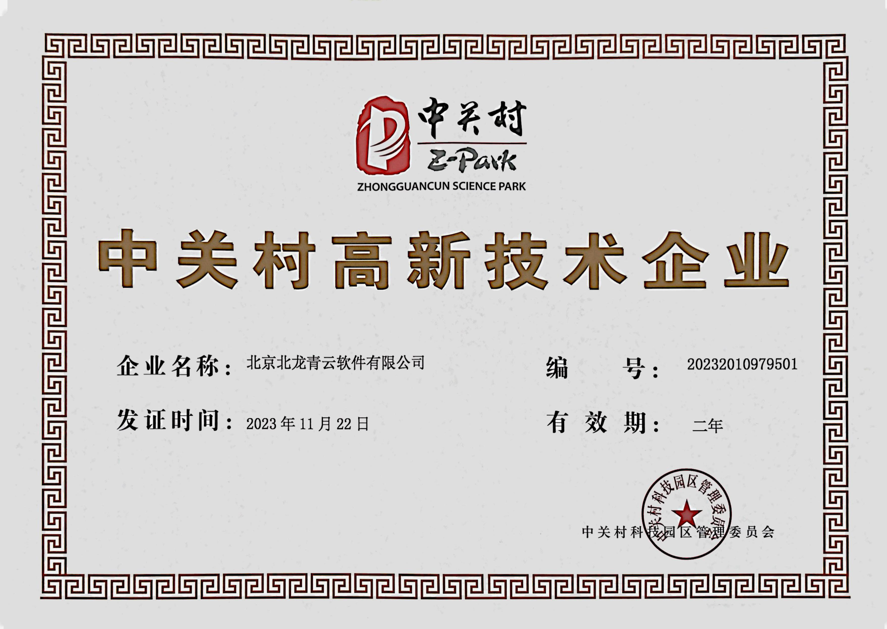 中關村高新技術企業證書