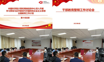 為深入開展學習貫徹習近平新時代中國特色社會主義思想主題教育工作,根據《中國科學院計算機網絡信息中心深入開展學習貫徹習近平新時代中國特色社會主義思想主題教育工作計劃》,6月6日第十黨支部召開支委擴大會議專項討論部署“干部教育整頓”活動及專題學習全面從嚴治黨、黨的自我革命、黨規黨紀。支委、黨員小組組長參加會議。會議現場會議組織大家認真學習了《中國科學院計算機網絡信息中心深入開展學習貫徹習近平新時代中國特色社會主義思想主題教育工作計劃》,尤其是針對“開展黨性分析”,“開展整改整治整頓”,“建立健全長效機制”等內容,結合檢查工作中支部自查自檢中發現的問題進行了逐一分析,并結合實際工作,學習傳達了中心干部教育整頓工作要求,討論部署第十黨支部專題組織生活會內容,明確具體措施、整改時限、責任分工,確保干部教育整頓工作部署到位、落實到位。會議集體學習了《習近平著作選讀》第二卷文章《重整行裝再出發,以永遠在路上的執著把全面從嚴治黨引向深入》《全面從嚴治黨探索出依靠黨的自我革命跳出歷史周期率的成功路徑》。在專題學習全面從嚴治黨、黨的自我革命、黨規黨紀方面,通過讀原著、學原文、悟原理,深刻領悟全面從嚴治黨的
