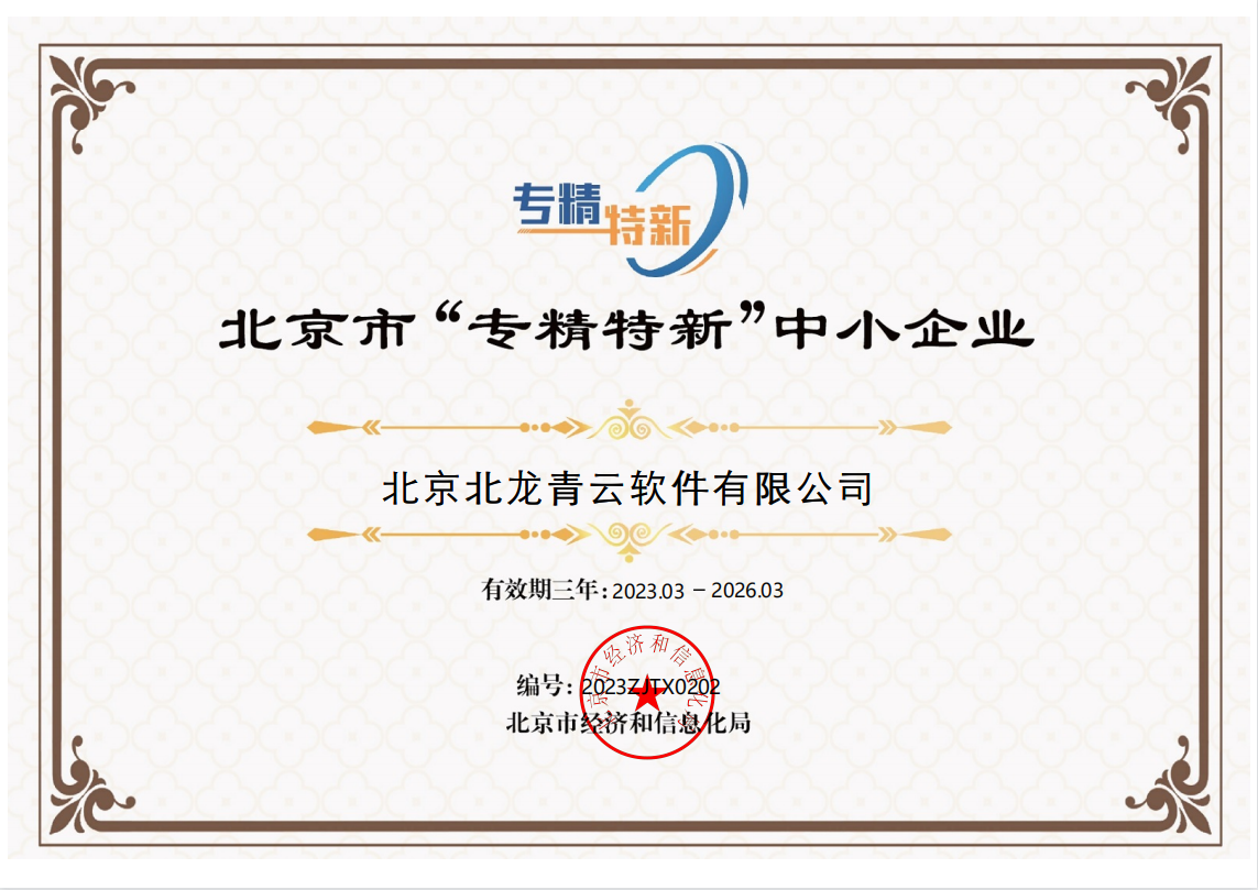 北京北龍青云軟件有限公司成立于2014年,公司擁有自主可控的豐富產品體系,為科研單元和企事業單位提供新型信息化管理應用軟件、數據決策平臺、全媒體網站群管理平臺及數據安防等建設與服務,加速客戶數字化轉型升級,是國家高新技術企業、中關村高新技術企業、北京市專精特新和創新型中小企業。